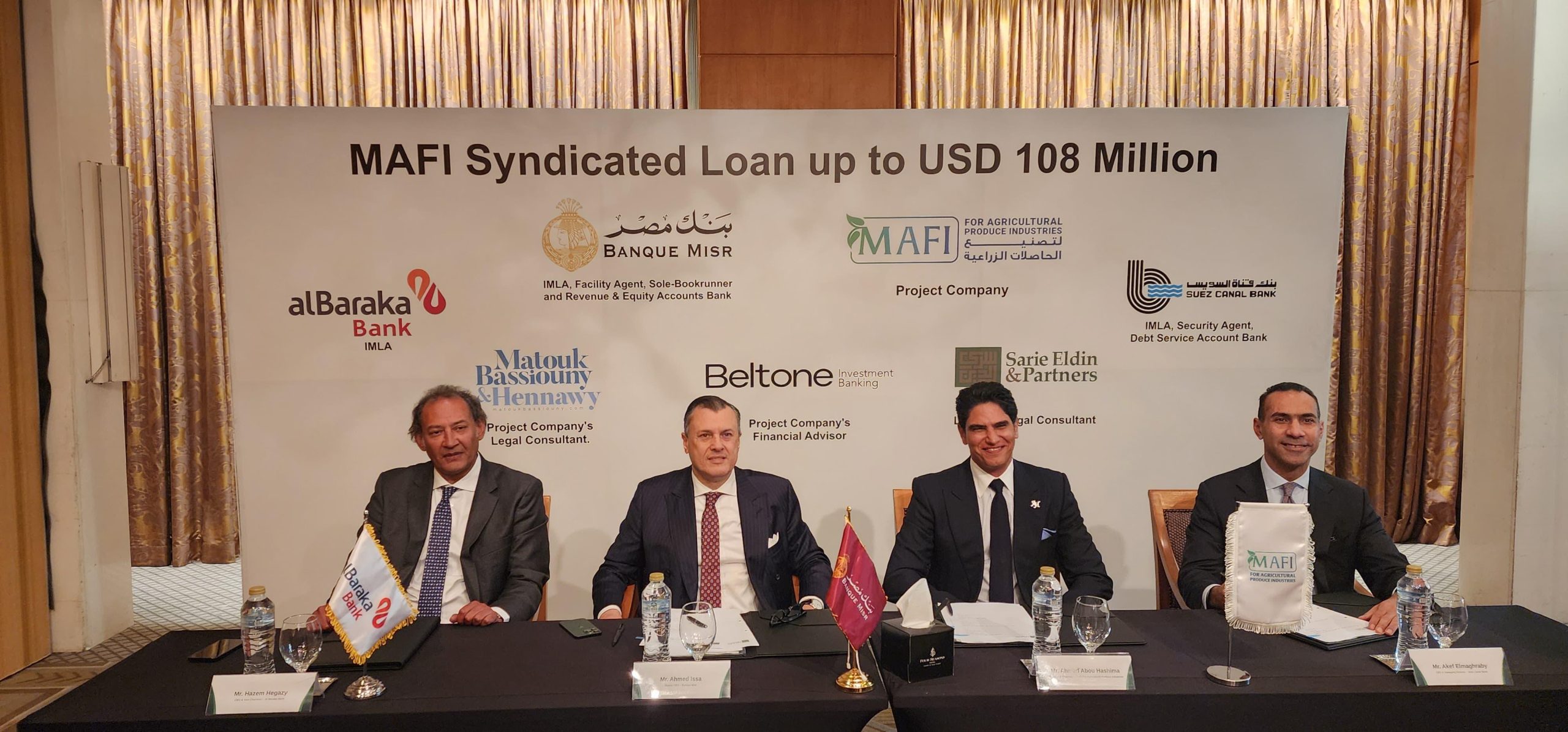 نجح تحالف مصرفي بقيادة بنك مصر مع بنك قناة السويس وبنك البركة-مصر في منح تمويل مشترك طويل الأجل بمبلغ 108 مليون دولار لصالح شركة ام ايه اف أي لتصنيع الحاصلات الزراعية MAFI ، لتمويل جزء من التكاليف الاستثمارية الخاصة بالمشروع الممول والبالغة في حدود 180 ملايين دولار .