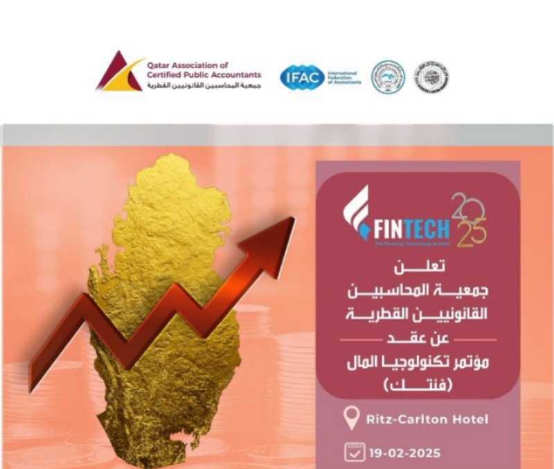 تنطلق في 19 فبراير المقبل بالدوحة، فعاليات النسخة الثالثة من مؤتمر تكنولوجيا المال “فنتك”، الذي تنظمه جمعية المحاسبين القانونيين القطرية.