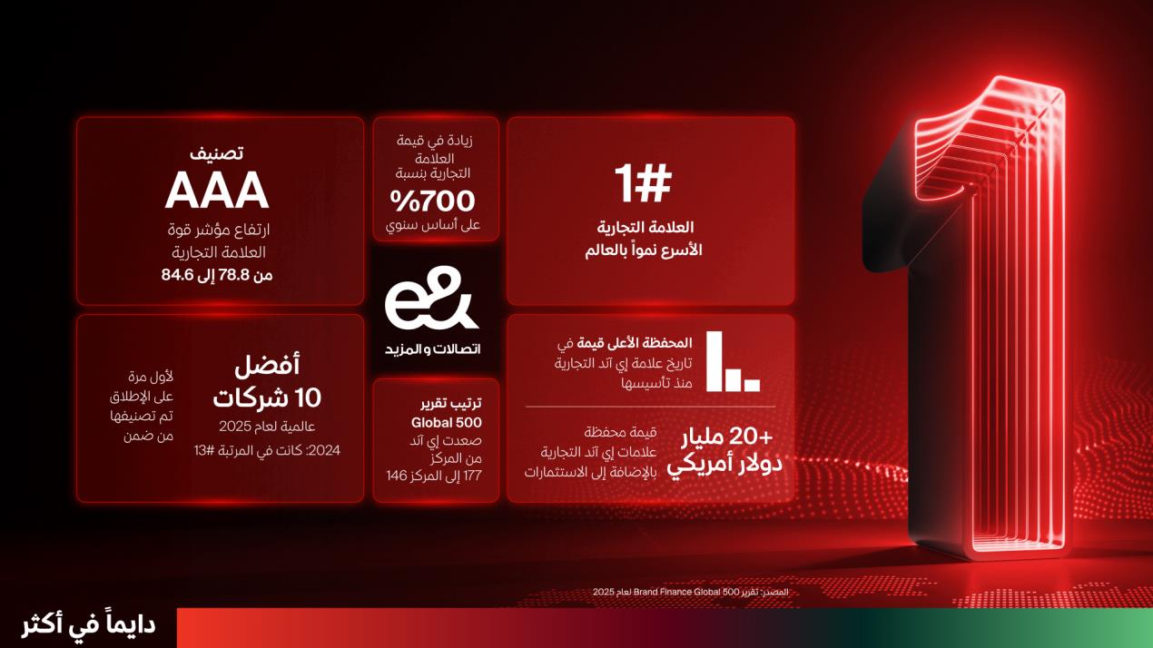 وحازت “إي آند” على تصنيف أفضل 10 علامات تجارية في مجال الاتصالات الأكثر قيمة على مستوى العالم وفقاً لتقرير “جلوبال 500 ” لعام 2025.