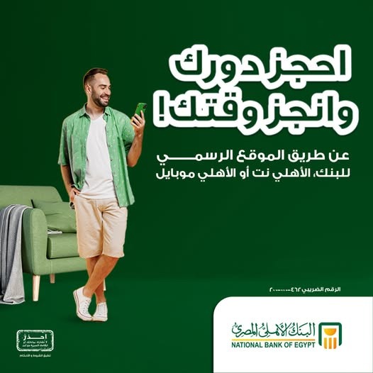 يُتيح البنك الأهلي المصري عن إطلاق خدمة حجز موعد مسبق عبر موقعه الإلكتروني، والتي تتيح للعملاء، سواء كانوا عملاء حاليين أو جدد، حجز موعد للحصول على خدمات البنك بشكل أكثر مرونة وتنظيمًا.
