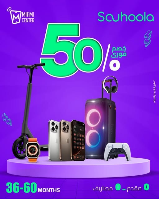أعلنت شركة سهولة للتمويل الاستهلاكي، الرائدة في تقديم الحلول التمويلية،عن عرض حصري ليوم الجمعة فقط، يتيح للعملاء الاستفادة من خصم فوري 50% عند التسوق في “ميامي سنتر” Miami Center بجميع الفروع.