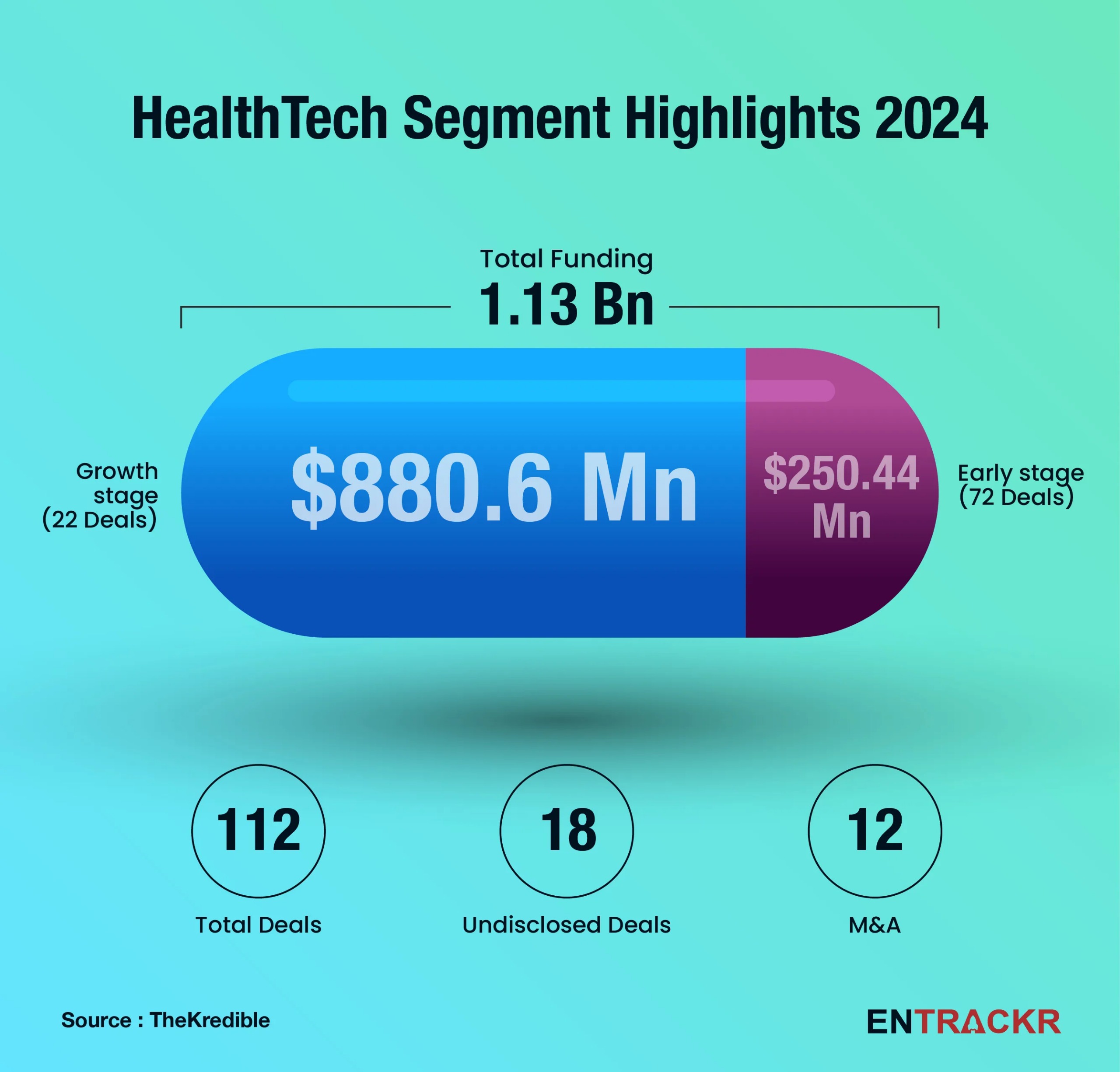 فيما يتعلق بالتمويل، شهد قطاع التكنولوجيا الصحية تعافيًا قويًا في عام 2024، حيث بلغ إجمالي رأس المال الذي تم جمعه 1.13 مليار دولار، مسجلًا انتعاشًا كبيرًا بعد التراجعات السابقة.