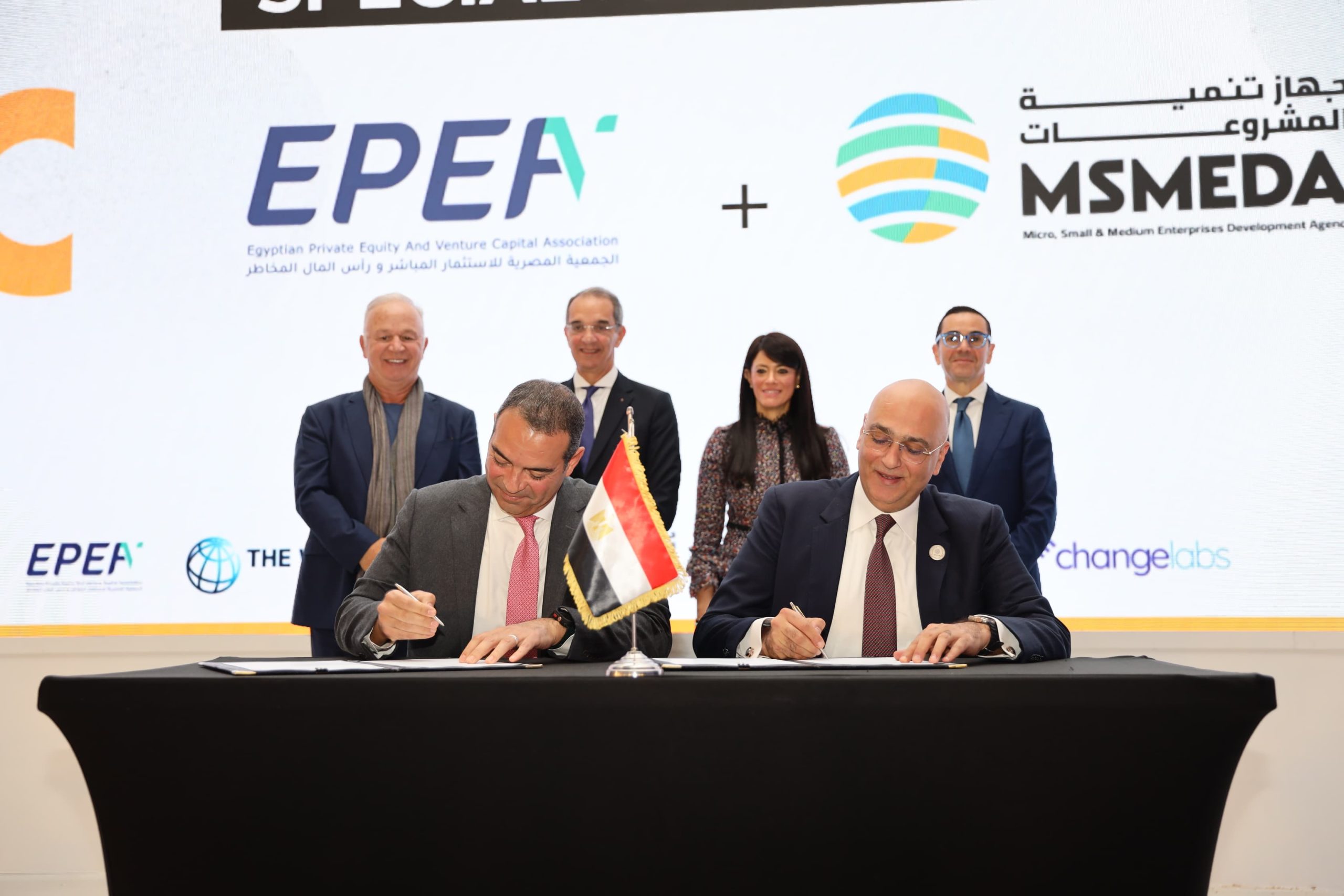 وقع باسل رحمي الرئيس التنفيذي لجهاز تنمية المشروعات المتوسطة والصغيرة ومتناهية الصغر وأيمن سليمان رئيس الجمعية المصرية للاستثمار المباشر ورأس المال المخاطر مذكرة تفاهم للمساهمة في دعم بيئة ريادة الأعمال في مصر.