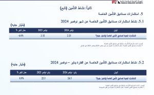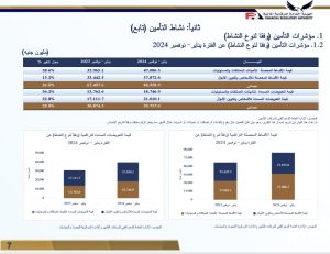 وأشار التقرير انه خلال الفترة من (يناير- نوفمبر) 2024، بلغت قيمة الأقساط المحصلة للتأمين التجاري 73.761 مليار جنيه، مقابل 59.759 مليار جنيه خلال نفس الفترة من 2023، بمعدل نمو 23.4%.