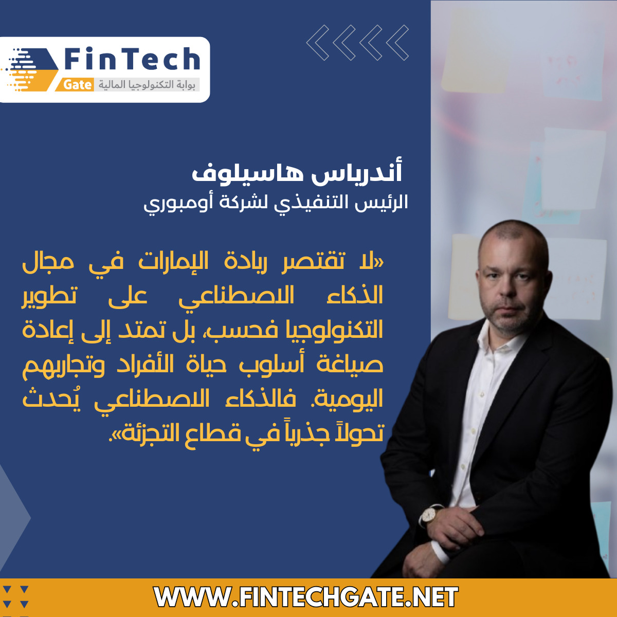 وقال أندرياس هاسيلوف، الرئيس التنفيذي لشركة أومبوري، إن ريادة الإمارات في مجال الذكاء الاصطناعي لا تقتصر على تطوير التكنولوجيا فحسب، بل تمتد إلى إعادة صياغة أسلوب حياة الأفراد وتجاربهم اليومية. فالذكاء الاصطناعي يُحدث تحولاً جذرياً في قطاع التجزئة، حيث يوفّر تجارب تسوّق مُخصصة بدقة، وعمليات شراء سلسة، وأتمتة ذكية تُحسّن الكفاءة التشغيلية.