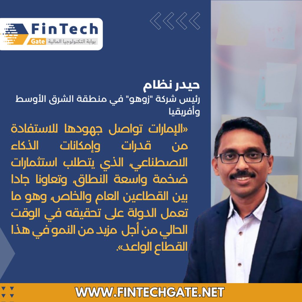 وقال “حيدر نظام”، رئيس شركة “زوهو” في منطقة الشرق الأوسط وأفريقيا، إن الإمارات تواصل جهودها للاستفادة من قدرات وإمكانات الذكاء الاصطناعي، الذي يتطلب استثمارات ضخمة واسعة النطاق، وتعاونا جادا بين القطاعين العام والخاص، وهو ما تعمل الدولة على تحقيقه في الوقت الحالي من أجل الحفاظ على تحقيق مزيد من النمو في هذا القطاع الواعد.