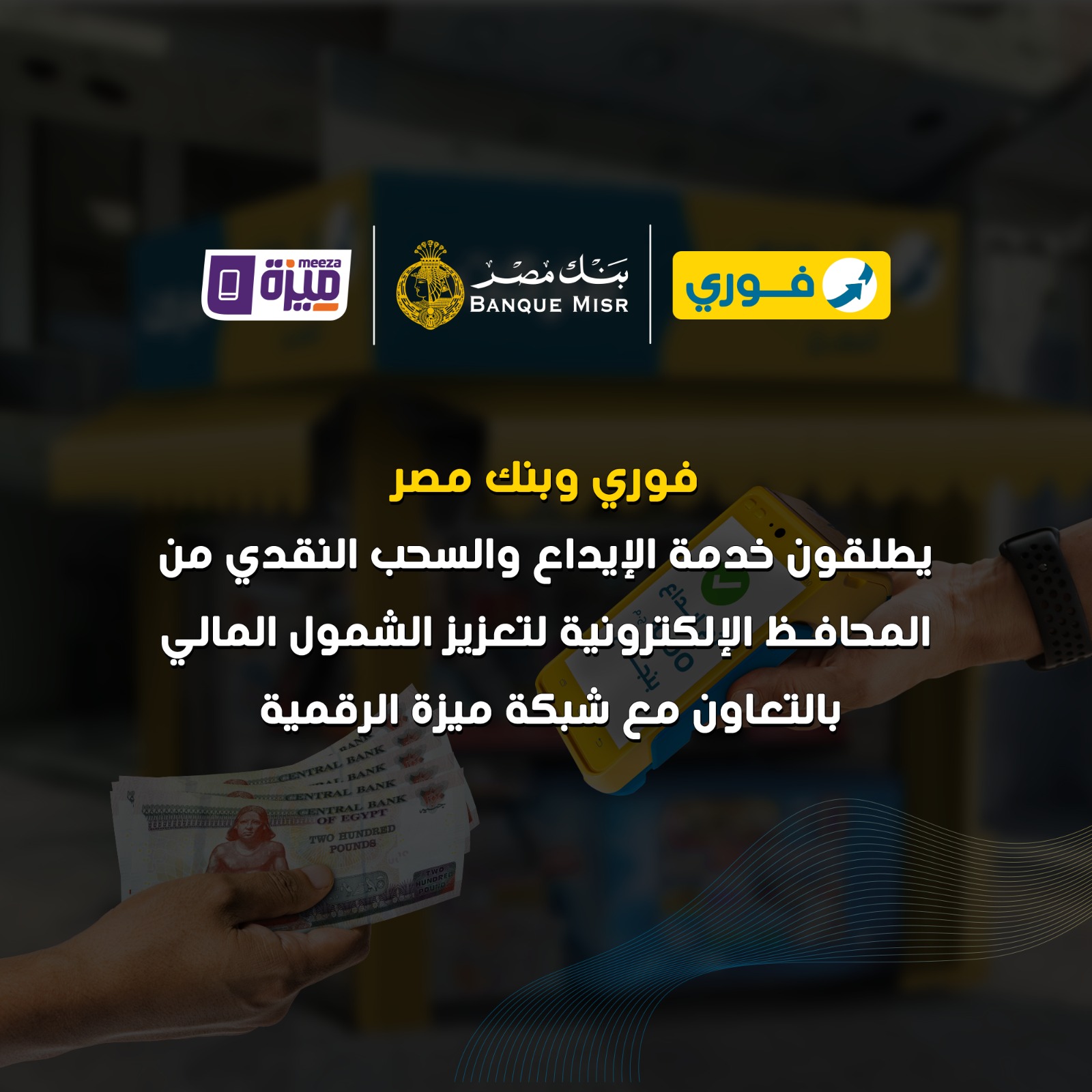 أعلنت شركة فوري، الرائدة في تقديم حلول الدفع الإلكتروني في مصر، بالتعاون مع بنك مصر وشركة بنوك مصر للتقدم التكنولوجي EBC، عن إطلاق خدمة الإيداع والسحب النقدي من المحافظ الإلكترونية من خلال منظومة ميزة ديجيتال، وهي خدمة جديدة تتيح لجميع العملاء الذين يمتلكون محفظة إلكترونية من أي بنك أو مؤسسة مالية إمكانية إجراء عمليات الإيداع والسحب النقدي من خلال نقاط البيع الالكترونية المتاحة من خلال شبكة فوري المنتشرة في جميع أنحاء البلاد بسهولة ومرونة، وهو ما يعكس التزام شركة فوري وبنك مصر وشركة بنوك مصر EBC بتعزيز الشمول المالي وتكثيف الجهود المبذولة لتوسيع نطاق الخدمات المالية لخدمة شرائح واسعة من المجتمع.