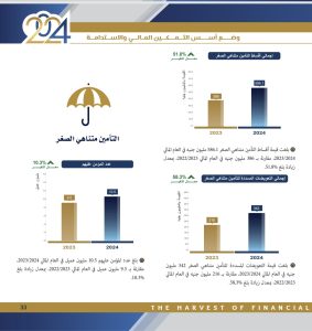 وذكر أن قيمة أقساط التأمين متناهي الصغر ارتفعت لتبلغ 586.1 مليون جنيه في العام المالي 2024/2023 مقارنة بـ 386 مليون جنيه في العام المالي 2023/2022 بمعدل زيادة بلغ 51.8%، فيما بلغت قيمة التعويضات المسددة للتأمين متناهي الصغر 342 مليون جنيه في 2024/2023 مقارنة بـ 216 مليون جنيه في 2023/2022 بمعدل زيادة بلغ 58.3%.