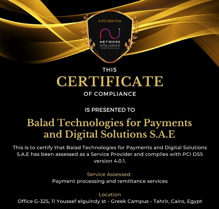 يُعد معيار PCI DSS أحد أكثر المعايير صرامة في مجال حماية البيانات المالية، حيث يتطلب من المؤسسات المالية والتكنولوجية الالتزام بإجراءات أمنية مشددة تهدف إلى منع الاحتيال وحماية معلومات الدفع الإلكتروني. وقد نجحت «Balad» في اجتياز عمليات التقييم والتدقيق الدقيق التي تضمن امتثالها الكامل لمتطلبات هذا المعيار.
