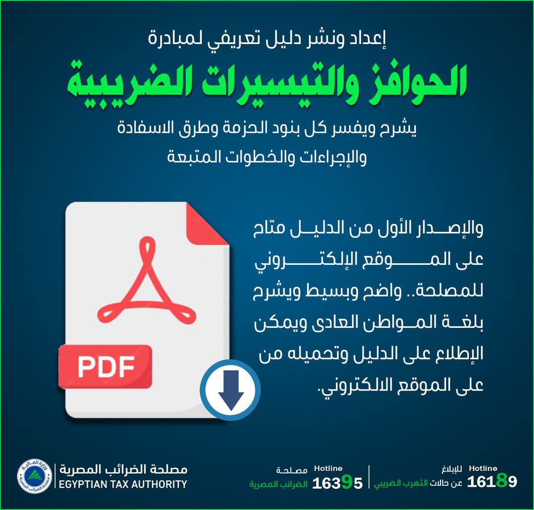 الرئيسية » «مصلحة الضرائب المصرية» تصدر الدليل التعريفي لمبادرة «الحوافز والتيسيرات الضريبية»