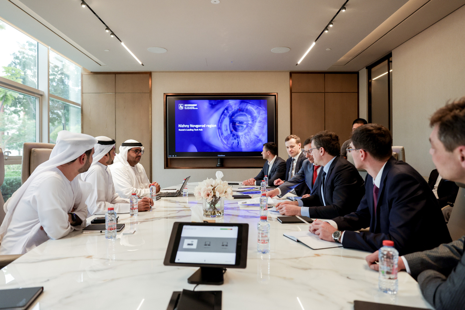 وقد استضافت مدينة دبي للإنترنت وفداً روسياً يترأسه جليب نيكيتين، حاكم منطقة نيجني نوفغورود، ويضمّ معالي ألكسندر سينلوبوف، وزير التنمية الرقمية لمنطقة نيجني نوفغورود في الاتحاد الروسي، لمناقشة سُبُل تحقيق أثر هادف ضمن قطاع التكنولوجيا.