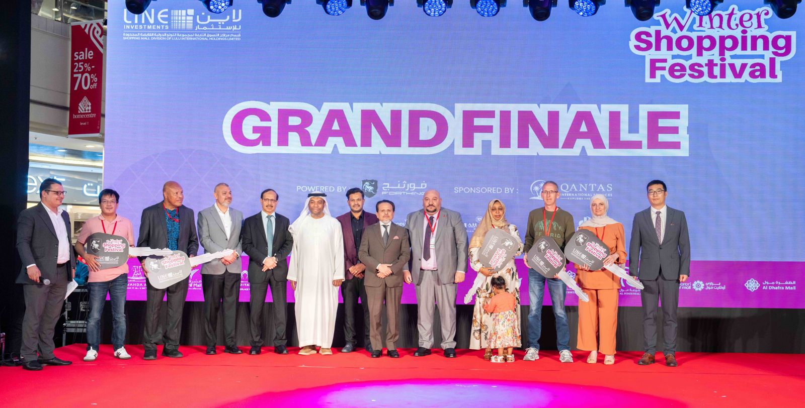 اختتمت شركة لاين للاستثمار والعقارات ذ.م.م، قسم التجزئة التابع لشركة اللولو العالمية القابضة، مهرجان الشتاء للتسوق بختام مذهل حيث تم تقديم جوائز تزيد قيمتها عن مليون درهم إماراتي تشمل باقات العطلات وأجهزة آيفون وغيرها. وقد استقطب المهرجان الذي استمر لمدة شهر كامل حشوداً غير مسبوقة في 11 مركزاً تجارياً في مناطق أبوظبي والعين والظفرة.