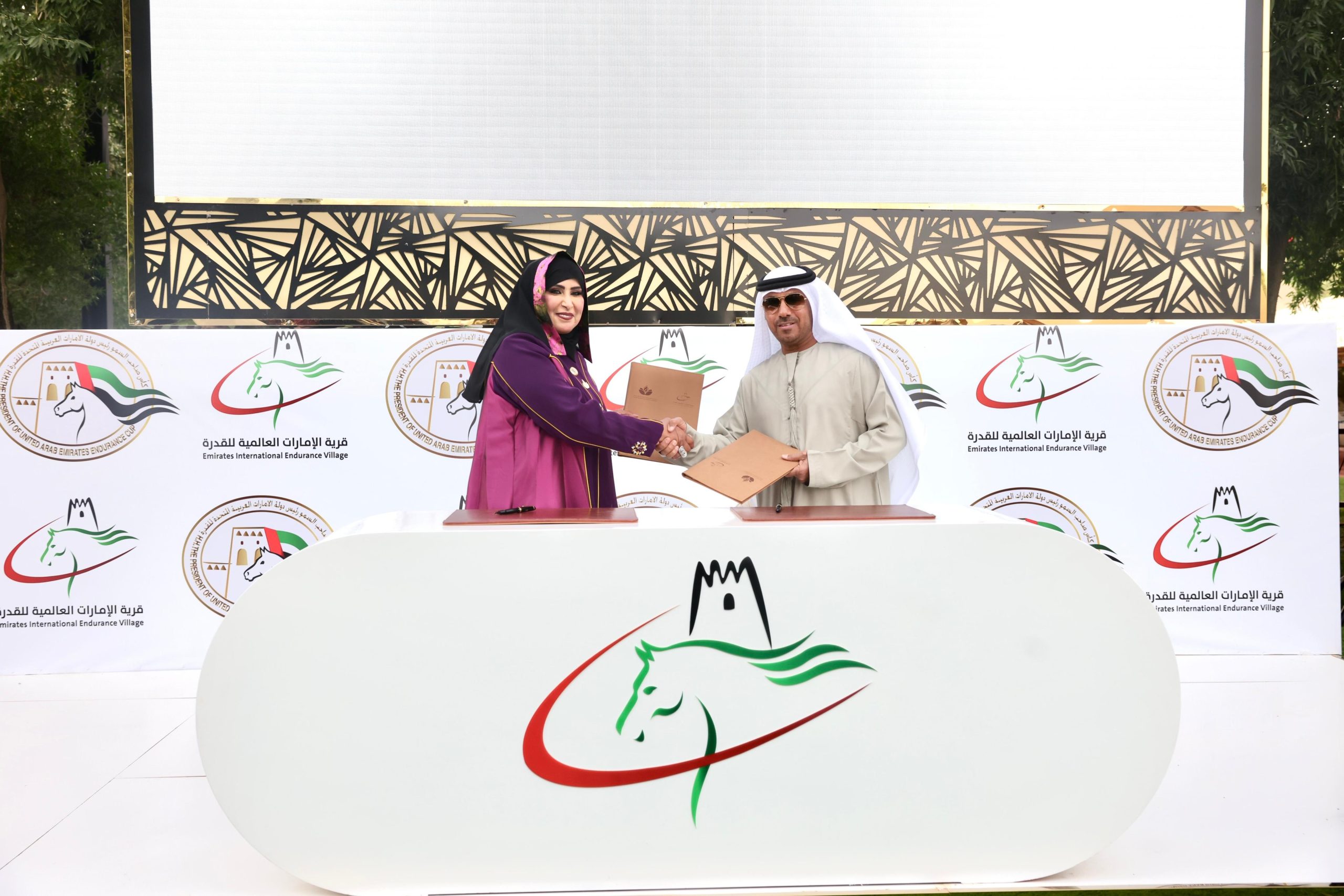 قام بالتوقيع على مذكرة التفاهم كل من الدكتورة شفيقة العامري رئيس مجلس إدارة جمعية الإمارات لرائدات الأعمال وسعادة مسلم سالم العامري مدير عام قرية الإمارات العالمية للقدرة.