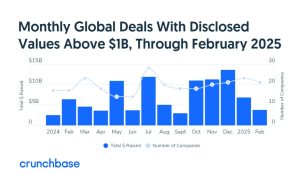 ومن المثير للاهتمام أن شهر فبراير لم يشهد انخفاضًا في عدد جولات التمويل التي تقدر قيمتها بمليار دولار أو أكثر، على الرغم من تباطؤ استثمارات رأس المال الجريء بشكل عام. جمعت 21 شركة تقييمات بمليار دولار أو أكثر، مقارنة بـ 23 شركة في يناير و 17 شركة في فبراير 2024.