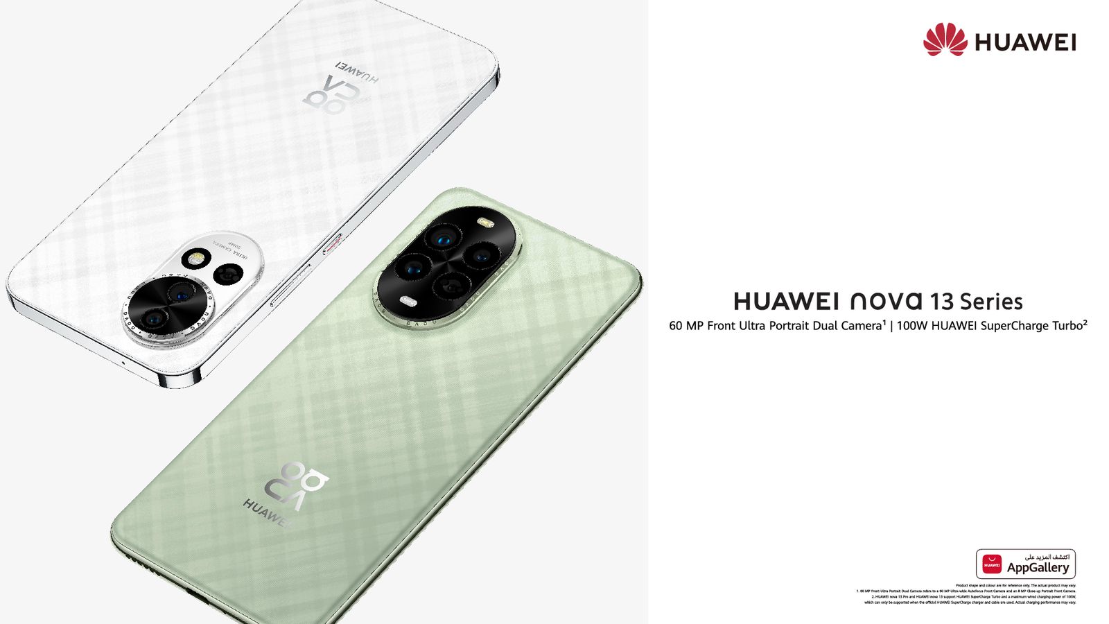 تقدم سلسلة nova 13 رؤية جديدة لتصميم الهواتف الذكية من خلال اللون الأخضر الجديد، وهو درجة مستوحاة من عالم الأزياء الراقية وتبعث على إحساس بالأناقة الهادئة. تتميز السلسلة بتصميم “النسيج المربّع الديناميكي” من هواوي، وهو إعادة تفسير عصرية للنمط التقليدي للمربعات.