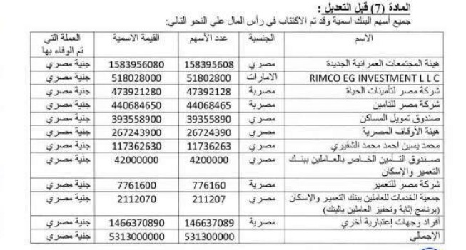 أعلن بنك التعمير والإسكان عن ملخص قرارات الجمعية العامة العادية التي انعقدت يوم الثلاثاء الموافق 25 مارس 2025، حيث وافقت الجمعية على عدة قرارات جوهرية تتعلق بالعام المالي المنتهي في 31 ديسمبر 2024.