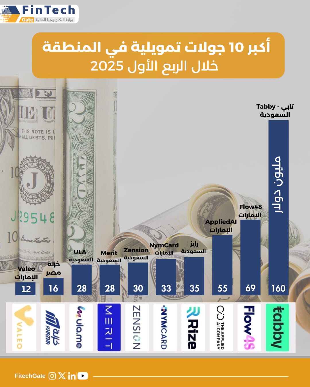 قائمة أكبر 10 جولات تمويلية في المنطقة خلال الربع الأول من 2025
