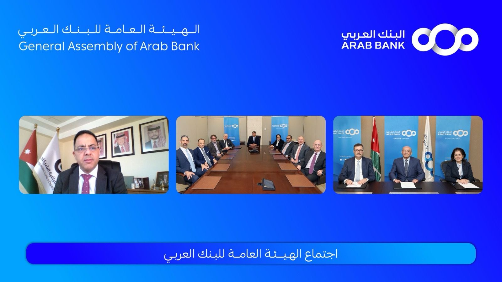 عقدت الهيئـة العامـة العادية لمساهمي البنك العربي اجتماعها برئاسة صبيح المصري رئيس مجلس الإدارة وبحضور أعضاء مجلس الإدارة والمدير العام التنفيذي ومساهمين يحملون أسهما «أصالة وإنابة ووكالة» يشكلون حوالي 79.06% من رأس المال.