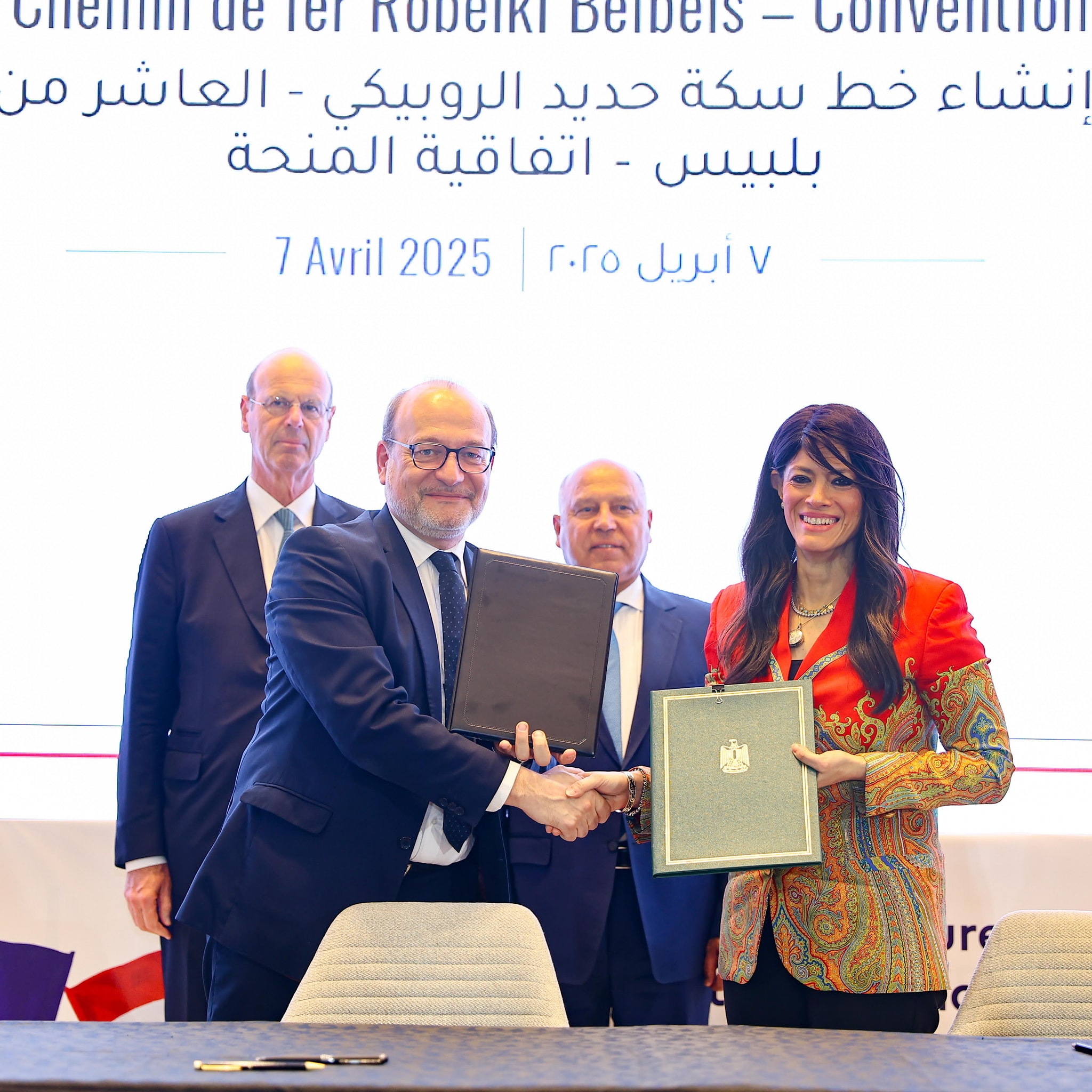 بينما وقع اتفاق التمويل، السيد/ محمد عامر، رئيس الهيئة القومية لسكك حديد مصر، والسيد/ إريك لومبار، وزير الاقتصاد والمالية والسيادة الصناعية والرقمية، والسيد/ ريمي ريو، المدير العام للوكالة الفرنسية للتنمية. وشهد التوقيع الفريق مهندس كامل الوزير، نائب رئيس الوزراء للتنمية الصناعية وزير النقل والصناعة، والدكتورة رانيا المشاط، وزيرة التخطيط والتنمية الاقتصادية والتعاون الدولي، والسيد/ فيليب تابارو، وزير النقل الفرنسي.
