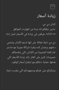 وذكر في رسالة بعثت بها للسائقين أنها تعمل دائما على دعم السائقين وحماية دخلهم منوه بأن الهدف من رفع الأسعار هو حماية دخلهم مع ارتفاع أسعار الوقود.