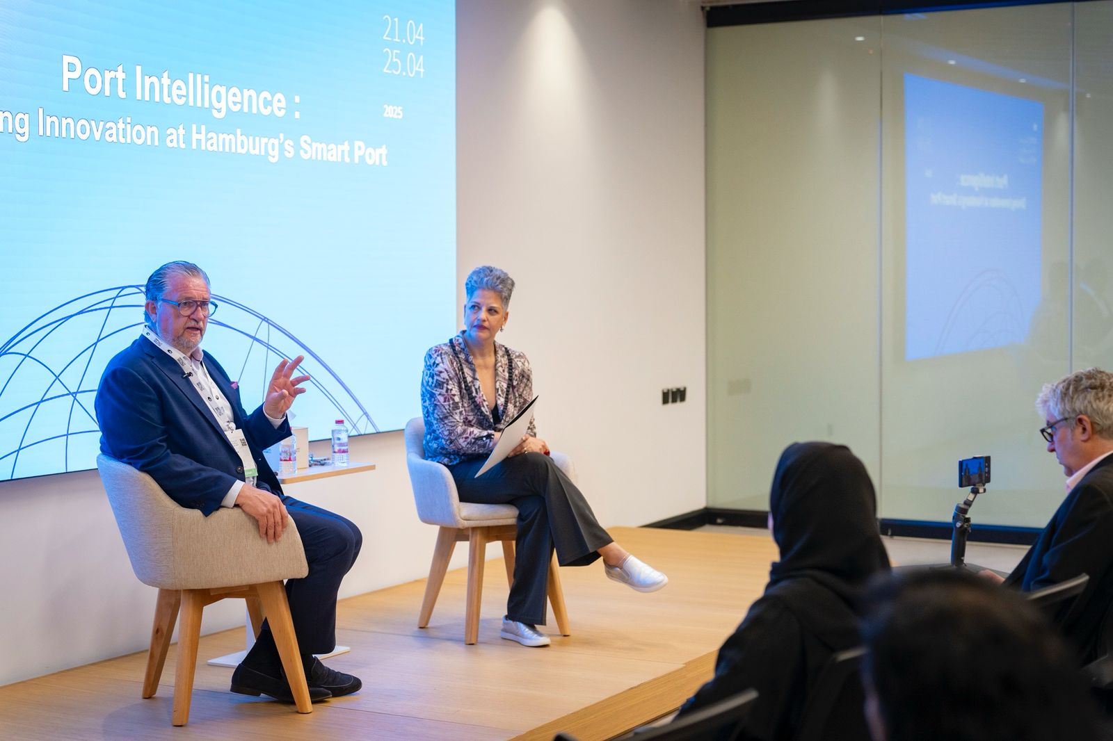 وفي عرض لتجربة دولية ناجحة في قطاع عمليات المناولة والخدمات اللوجستية المدعومة بالذكاء الاصطناعي، قدمت جلسة بعنوان “ذكاء الموانئ” نظمتها هيئة موانئ هامبورج الألمانية، نظرة عامة الابتكار في عالم الشحن وملامح موانئ المستقبل الذكية التي تستخدم البيانات لرفع كفاءة العمليات والتشغيل.