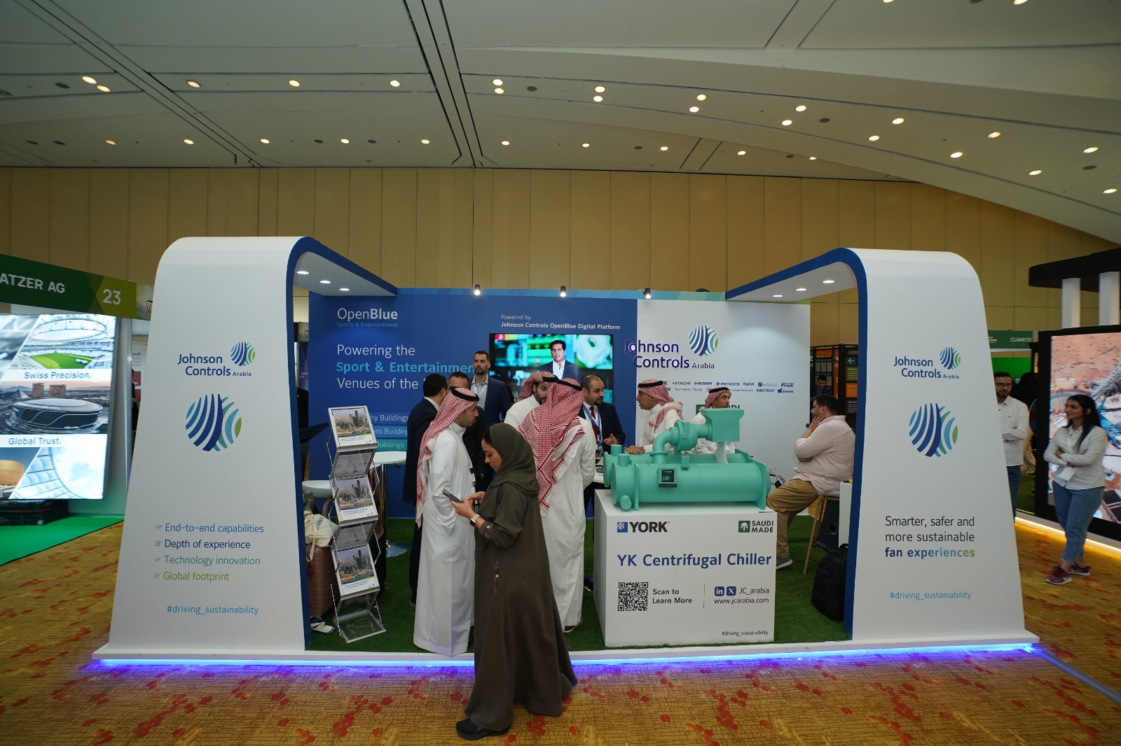 كما سلّطت الشركة الضوء على مجموعة من حلولها الرقمية المتطورة ضمن منصة OpenBlue، التي تتيح إدارة ذكية للملاعب والمنشآت الرياضية، وتحسّن تجربة المشجعين عبر تقنيات التفاعل والتحكم الرقمي، إلى جانب عرض حلول التبريد المتطورة من علامة يورك، المُصنّعة محليًا في المملكة.