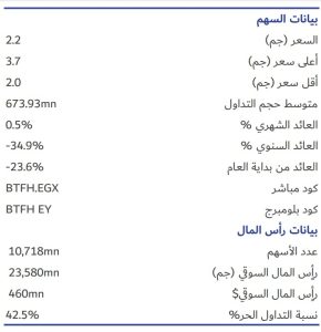• نموذج الدخل المتبقي (RIM): تم احتساب قيمة عادلة قدرها 4.6 جنيه للسهم بوزن نسبي 60%.