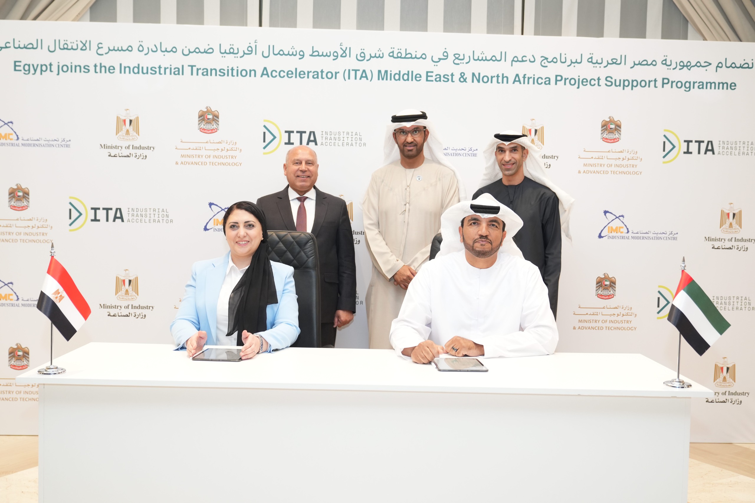 وشهد التوقيع كل من الدكتور سلطان بن أحمد الجابر، وزير الصناعة والتكنولوجيا المتقدمة، الرئيس المشارك لمبادرة مسرّع الانتقال الصناعي، و الفريق المهندس كامل الوزير، نائب رئيس الوزراء المصري للتنمية الصناعية، وزير النقل والصناعة، والدكتور ثاني بن أحمد الزيودي، وزير دولة للتجارة الخارجية.