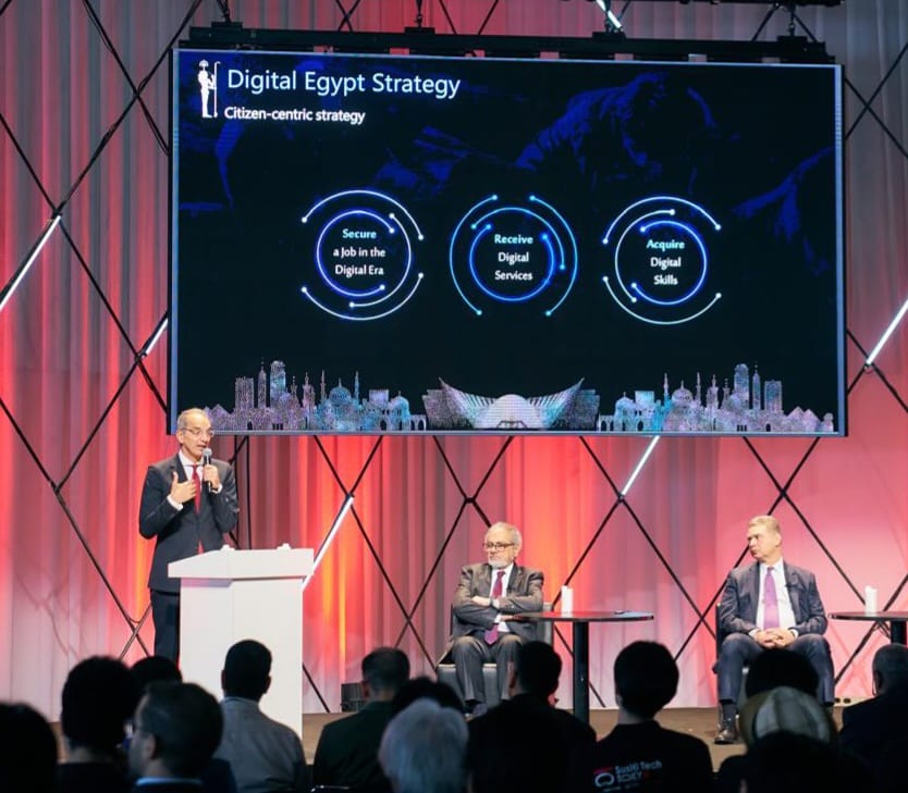 ولفت طلعت إلى الجهود المبذولة لتطوير بنية تحتية رقمية متقدمة، من خلال الاستثمار فى البنية التحتية الرقمية الدولية، ومد كابلات الألياف الضوئية على مستوى الجمهورية، وإنشاء أبراج المحمول، والعمل على إطلاق خدمات الجيل الخامس بالإضافة إلى إطلاق سياسة الحوسبة السحابية أولا؛ مشيرا إلى أن مصر تحظى بموقع جغرافى استراتيجى فريد حيث يمر بها أكثر من 90% من حركة البيانات بين الشرق والغرب من خلال 16 كابل بحرى.