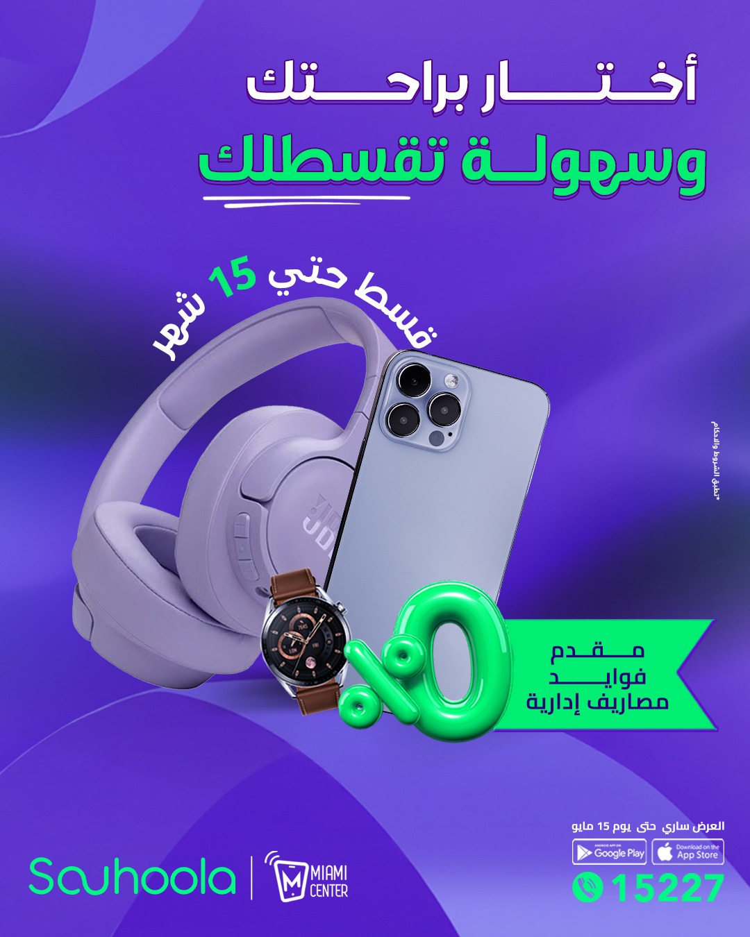العرض الجديد يأتي بمزايا حصرية، حيث يتيح للعملاء شراء احتياجاتهم من فروع «ميامي سنتر» دون الحاجة إلى دفع مقدم أو تحمل فوائد أو دفع مصاريف إدارية وبالتقسيط حتى 15 شهرا.