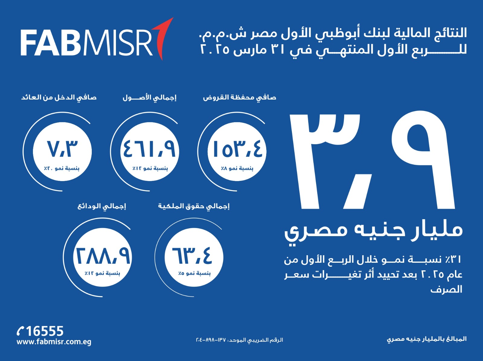 Commenting on the results, Mr. Mohamed Abbas Fayed, Chief Executive Officer and Managing Director of FABMISR, expressed confidence in the bank’s positive trajectory, saying: “Our first-quarter results for 2025 reflect the strength of our business model and the thoughtful execution of our strategy, which centers on innovation and delivering real value to our clients. The bank has continued to achieve strong performance, driven by high operational efficiency and adaptability in responding to economic changes. This is reflected in the real growth of 31% in core operating results, after neutralizing the impact of foreign exchange rates. This growth not only reflects the strength of our financial performance, but also affirms our ability to continue delivering integrated banking solutions that meet the needs of both individuals and businesses, supporting their financial and investment goals.”