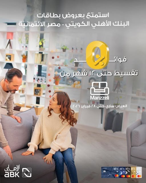 أعلن «البنك الأهلي الكويتي – مصر» عن إطلاق عرض خاص لعملائه من حاملي البطاقات الائتمانية، يتيح لهم تقسيط مشترياتهم من متجري «Manzzeli» لمدة تصل إلى 12 شهرًا بدون فوائد، في إطار حرص البنك على دعم خطط العملاء الاستهلاكية وتيسير عمليات الشراء بالتقسيط.