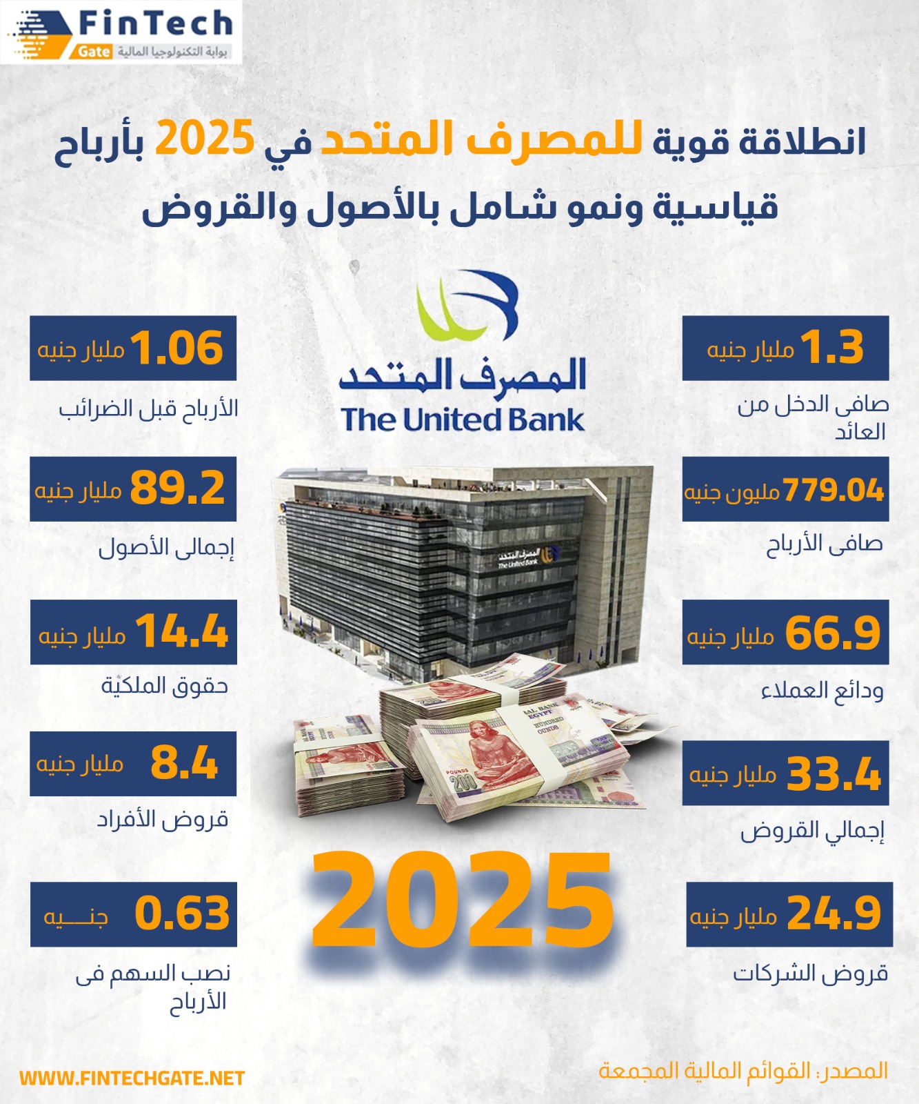 صافى أرباح «المصرف المتحد» تقفز 66.9% إلى 779.04 مليون جنيه بالربع الأول 2025