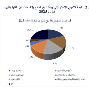 وأضاف خلال الربع الأول من العام الحالي استحوذ قطاع «شراء السيارات والمركبات » على نسبة 19.8% من قيمة التمويلات،تلاه في المرتبة الثانية «الأجهزة الكهربائية والالكترونيات» على نسبة 17.3% من إجمالي التمويلات