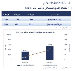 وأوضح أن اجمالي قيم التمويلات الممنوحة من شركات التمويل الاستهلاكي خلال مارس الماضي ارتفعت لتبلغ 5.519 مليار جنيه مقابل 3.355 مليار جنيه خلال نفس الشهر من 2024 بارتفاع بلغت نسبته 64.5%، كما ارتفع عدد العملاء ليصل الى 804.1 ألف عميل في مارس الماضي، مقابل 279.3 ألف عميل في مارس 2024 بزيادة بلغت نحو 187.9%.