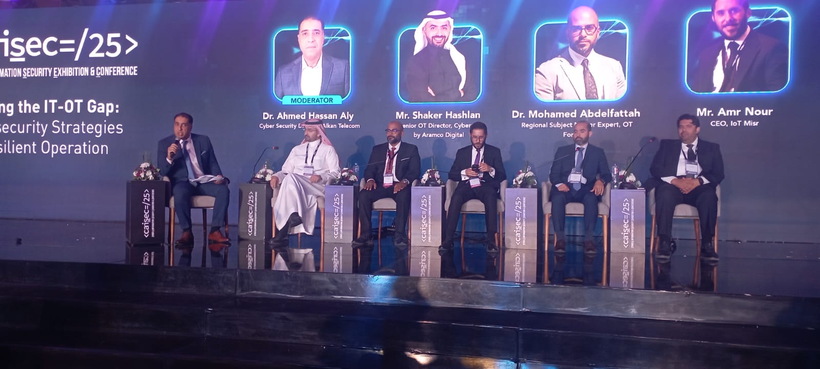 اجمع المشاركون في جلسة “سد الفجوة بين تقنيتي المعلومات (IT) والتشغيل (OT): نحو أمن سيبراني يعزز استمرارية الأعمال”، ضمن فعاليات المؤتمر والمعرض الدولي لأمن المعلومات والأمن السيبراني CAISEC’25، على أن التكامل بين IT وOT يمثل تحديًا استراتيجيًا في ظل تسارع التحول الرقمي وتزايد التهديدات السيبرانية.