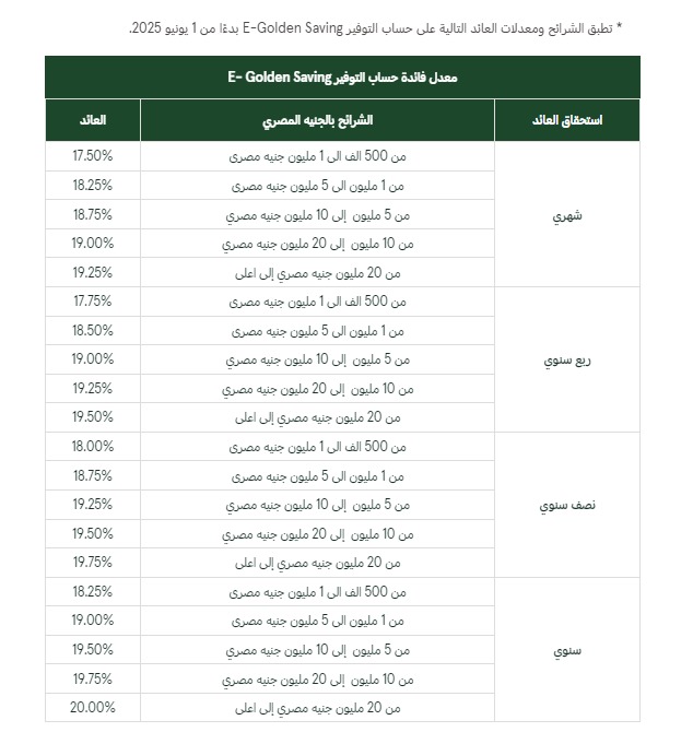أسعار الفائدة الجديدة على حساب التوفير «E-Golden Saving»: