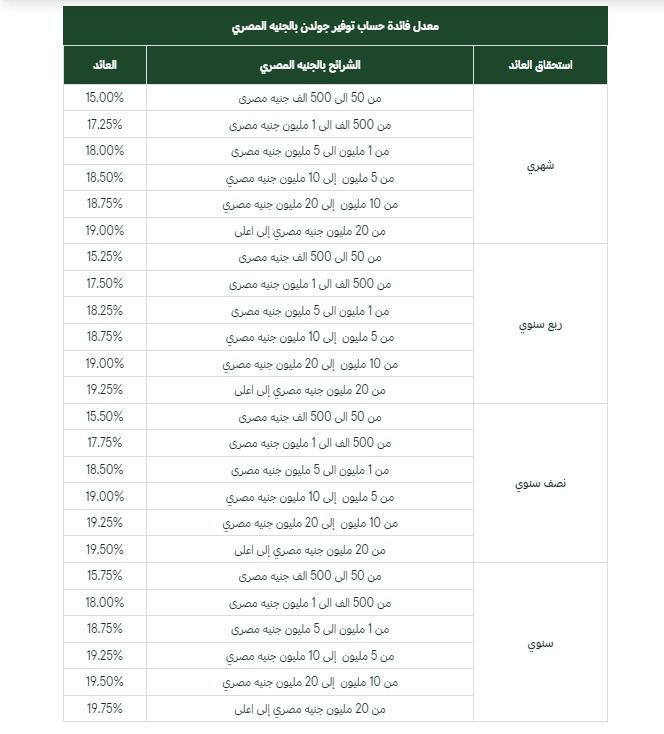 تفاصيل أسعار الفائدة الجديدة على حساب التوفير «جولدن بلس» بالجنيه المصري: