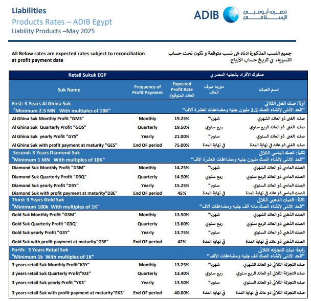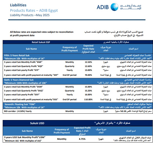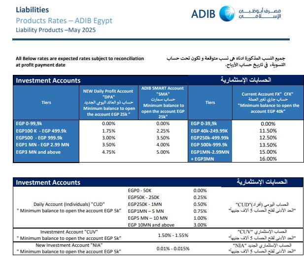وأوضح «مصرف أبو ظبي الإسلامي – مصر» أن العملاء يمكنهم الاطلاع على تفاصيل التعديلات الجديدة من خلال القنوات الرسمية للبنك أو عبر فروعه المنتشرة على مستوى الجمهورية، بما يضمن الشفافية وسهولة اتخاذ القرار الاستثماري المناسب.