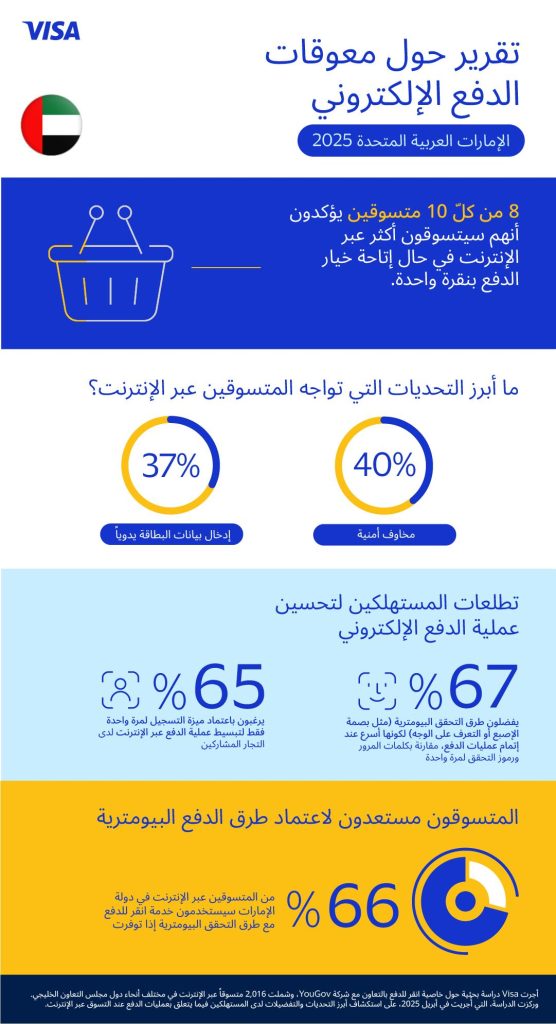 أعلنت Visa، الشركة الرائدة عالمياً في مجال المدفوعات الرقمية، اليوم عن نتائج “تقرير مشكلات عملية الدفع”، التي أظهرت الرغبة الكبيرة لدى المستهلكين في دولة الإمارات في توفر تجربة تسوق إلكتروني أكثر أماناً وسلاسة.
