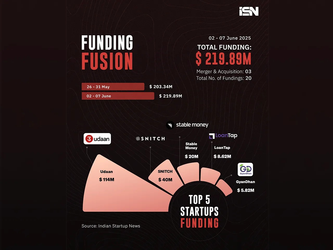 شهدت السوق الهندية نشاطًا تمويليًا خلال الأسبوع الأول من يونيو 2025، حيث جمعت 20 شركة ناشئة تعمل في قطاعات متنوعة تمويلات تجاوزت 219 مليون دولار، خلال الفترة من 2 إلى 7 يونيو، وذلك بحسب تقرير نشره موقع «ISN».