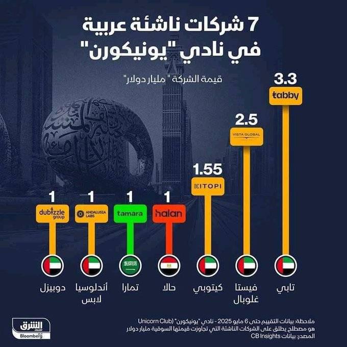 وأضاف سموه في تدوينة عبر منصة «إكس»: 7 شركات ناشئة عربية انضمّت إلى نادي «اليونيكورن» (بقيمة تفوق مليار دولار لكل واحدة)، منها 5 شركات انطلقت من الإمارات.