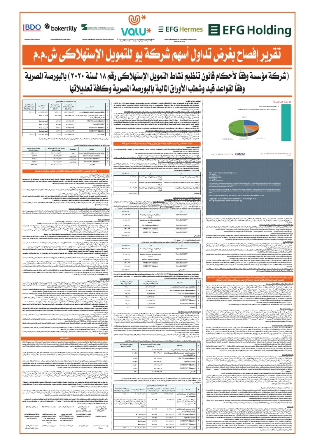 وكانت الهيئة العامة للرقابة المالية قد وافقت على نشر تقرير الإفصاح بغرض تداول أسهم رأسمال شركة “يو للتمويل الاستهلاكي” ، ( ڤاليو)، إحدى الشركات التابعة لشركة مجموعة إي اف جي القابضة.