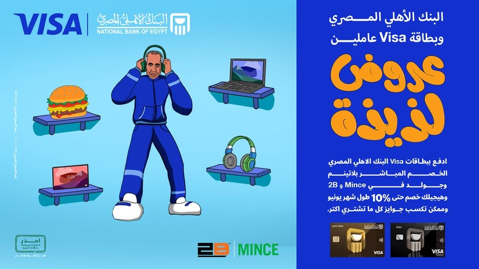 أطلق «البنك الأهلي المصري» حملة عروض حصرية لعملائه حاملي بطاقات فيزا الخصم المباشر الذهبية والبلاتينية خلال شهر يونيو 2025، تتيح لهم الاستمتاع بخصومات فورية تصل إلى 10% لدى متاجر «Mince» و«2B»، إلى جانب فرص للفوز بجوائز إلكترونية قيّمة.