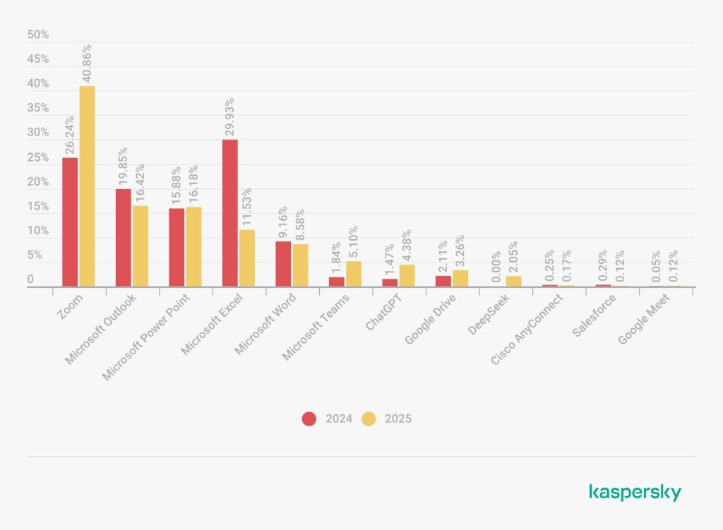 ووفقًا لتقرير حديث أصدرته «Kaspersky»، فإن نحو 8,500 مستخدم من قطاع الأعمال الصغيرة والمتوسطة تعرضوا لهجمات سيبرانية استغلت الشعبية المتزايدة لخدمات الذكاء الاصطناعي مثل «ChatGPT» و«DeepSeek». وقد لاحظ خبراء الشركة وجود أكثر من 4,000 ملف خبيث أو غير مرغوب فيه انتحلت أسماء تطبيقات إنتاجية معروفة، أبرزها «Zoom» و«Microsoft Office»، إلى جانب التطبيقات المعتمدة على الذكاء الاصطناعي.