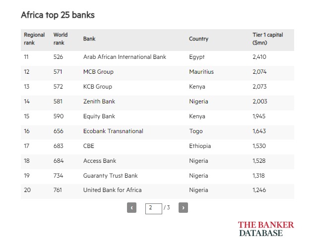 وكانت مجلة «The Banker» العالمية أصدرت مؤخرًا تصنيفها السنوي لأقوى 25 بنكاً في أفريقيا لعام 2025، مستندة إلى معيار رأس المال من الشريحة الأولى (Tier 1 Capital)، والذي يُعد المؤشر الأهم لقياس القوة المالية للبنوك وقدرتها على النمو وتحمل المخاطر.