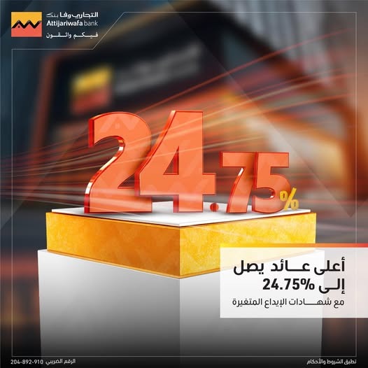 - عائد سنوي مغرٍ بنسبة 24.75% (أي أعلى بـ0.75% من السعر الرسمي للإيداع).