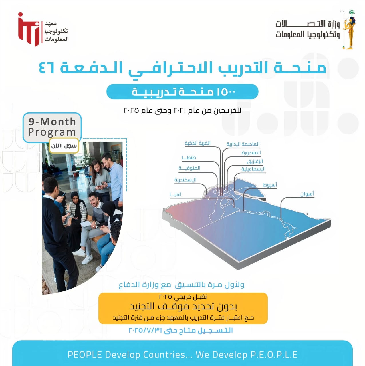أعلن معهد تكنولوجيا المعلومات عن بدء التقديم للالتحاق بالدفعة السادسة والأربعين من برنامجه التدريبي الاحترافي الشهير “منحة التسعة أشهر”، والموجه لخريجي الجامعات المصرية من دفعات 2021 وحتى 2025.