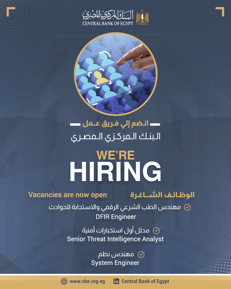 أعلن البنك المركزي المصري عن فتح باب التقديم لعدد من الوظائف الشاغرة في قطاع الأمن السيبراني، وذلك ضمن جهوده المستمرة لتعزيز قدراته الدفاعية الرقمية ومواكبة التحديات التقنية المتزايدة.