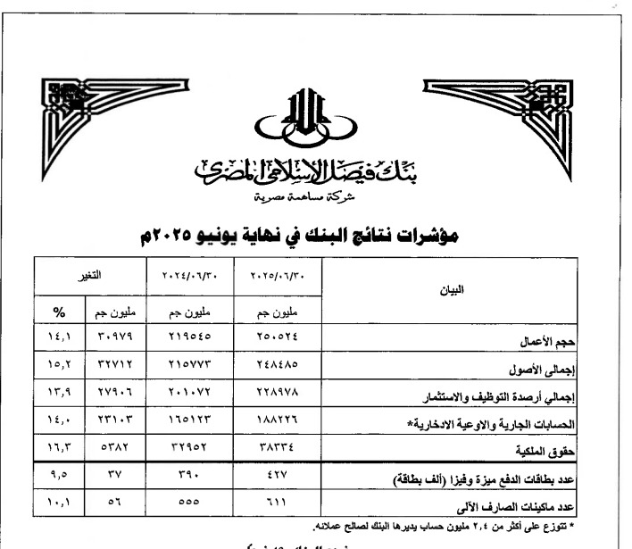 تراجع صافي أرباح «بنك فيصل الإسلامي» لتبلغ 1.382 مليار جنيه خلال النصف الأول من 2025
